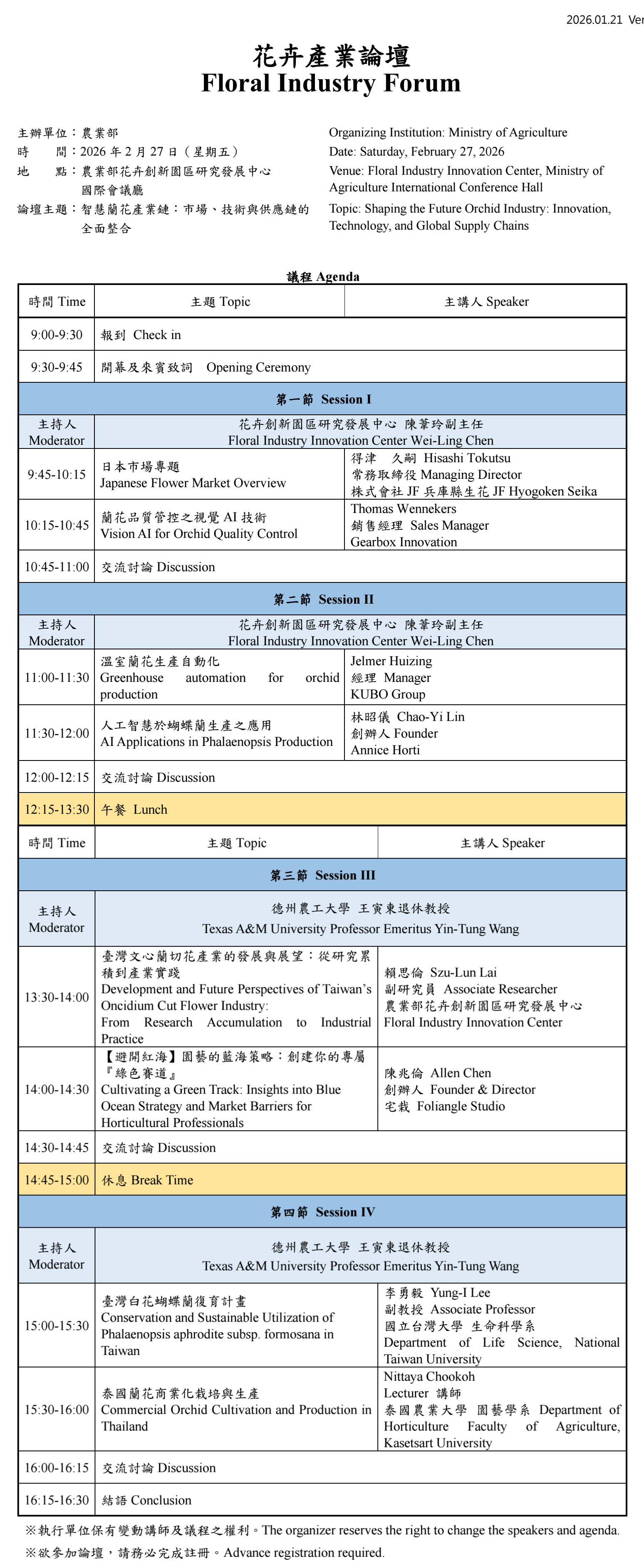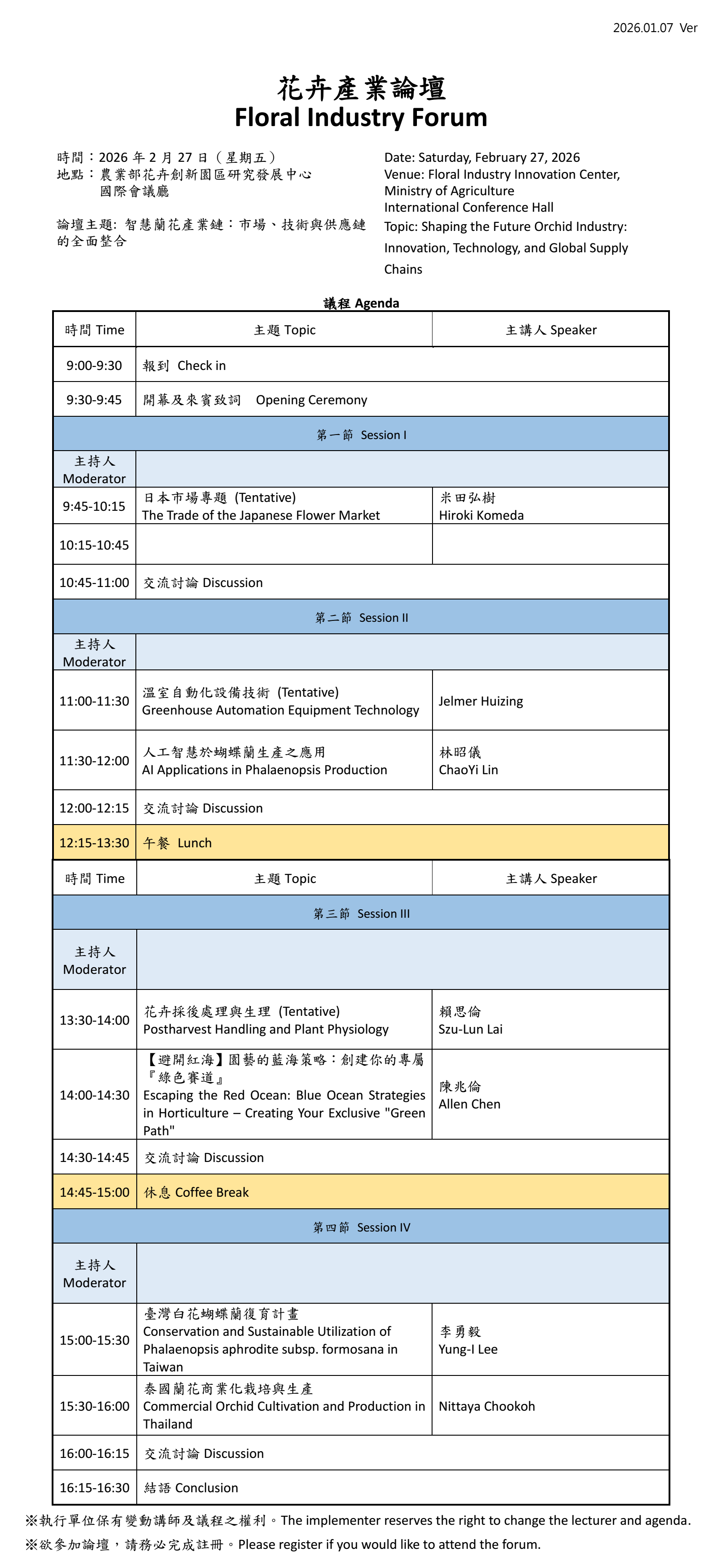 ※ 暫定議程,持續更新中 ※ Tentative agenda, subject to updates