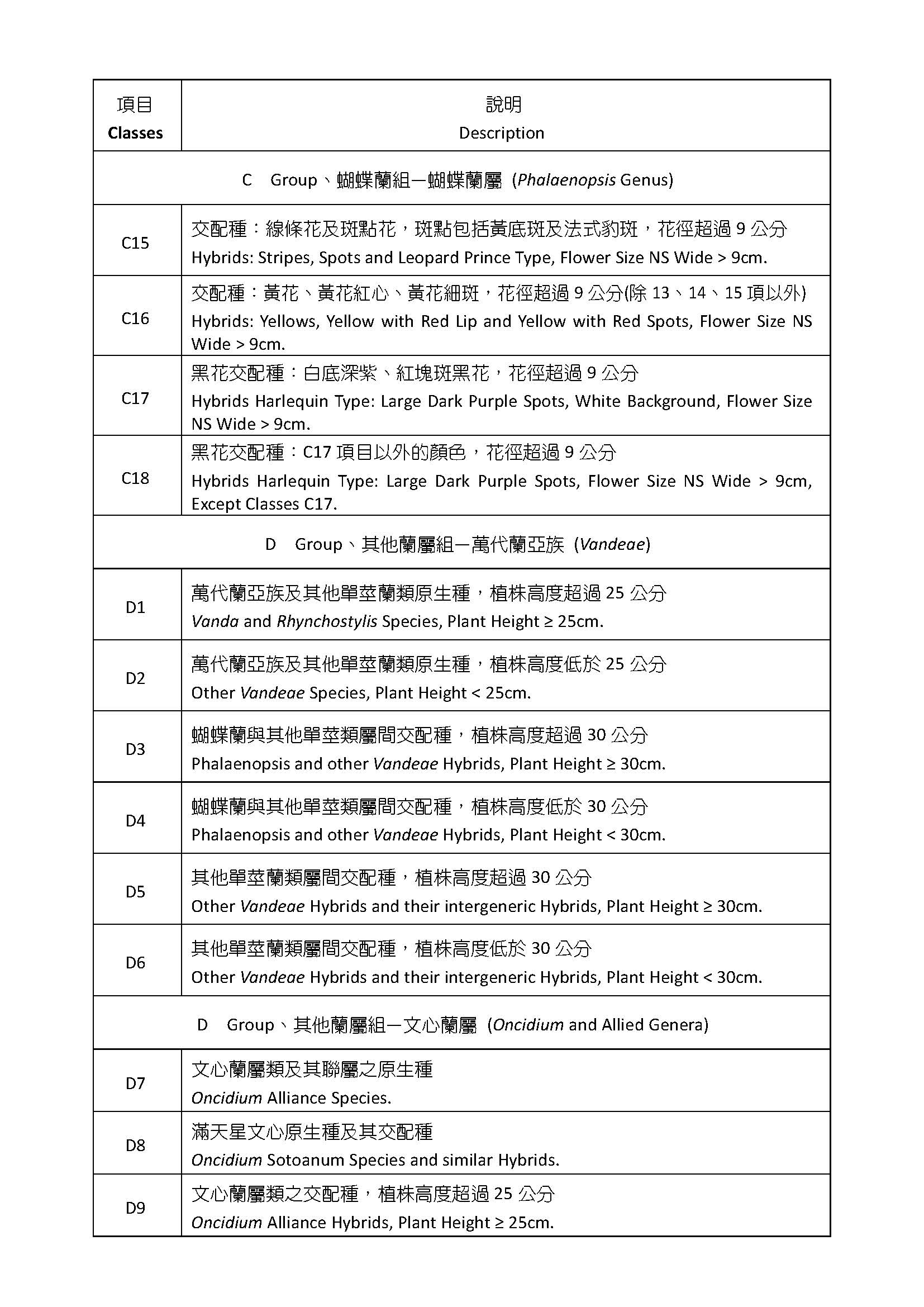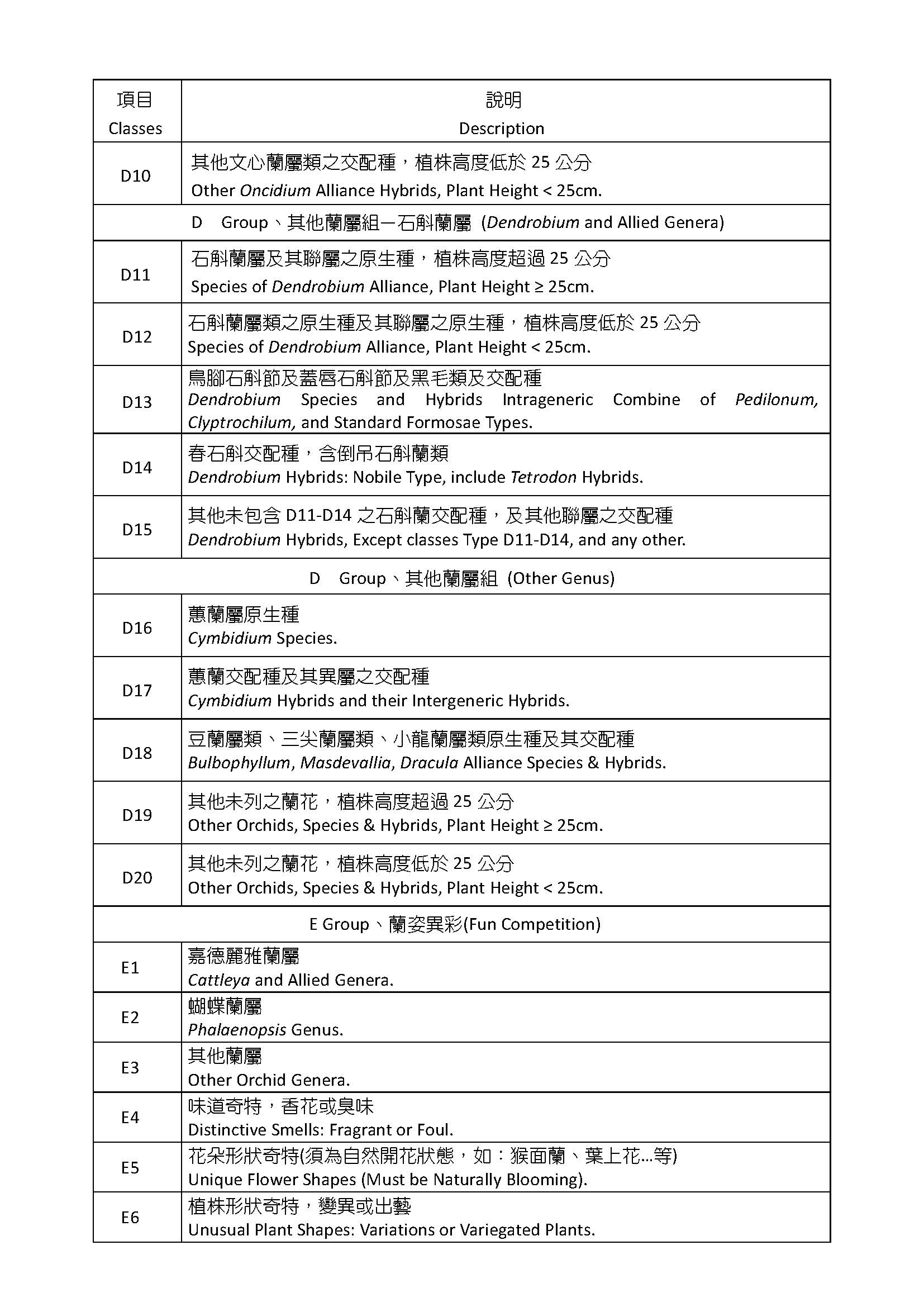 個別參展競賽組別項目表