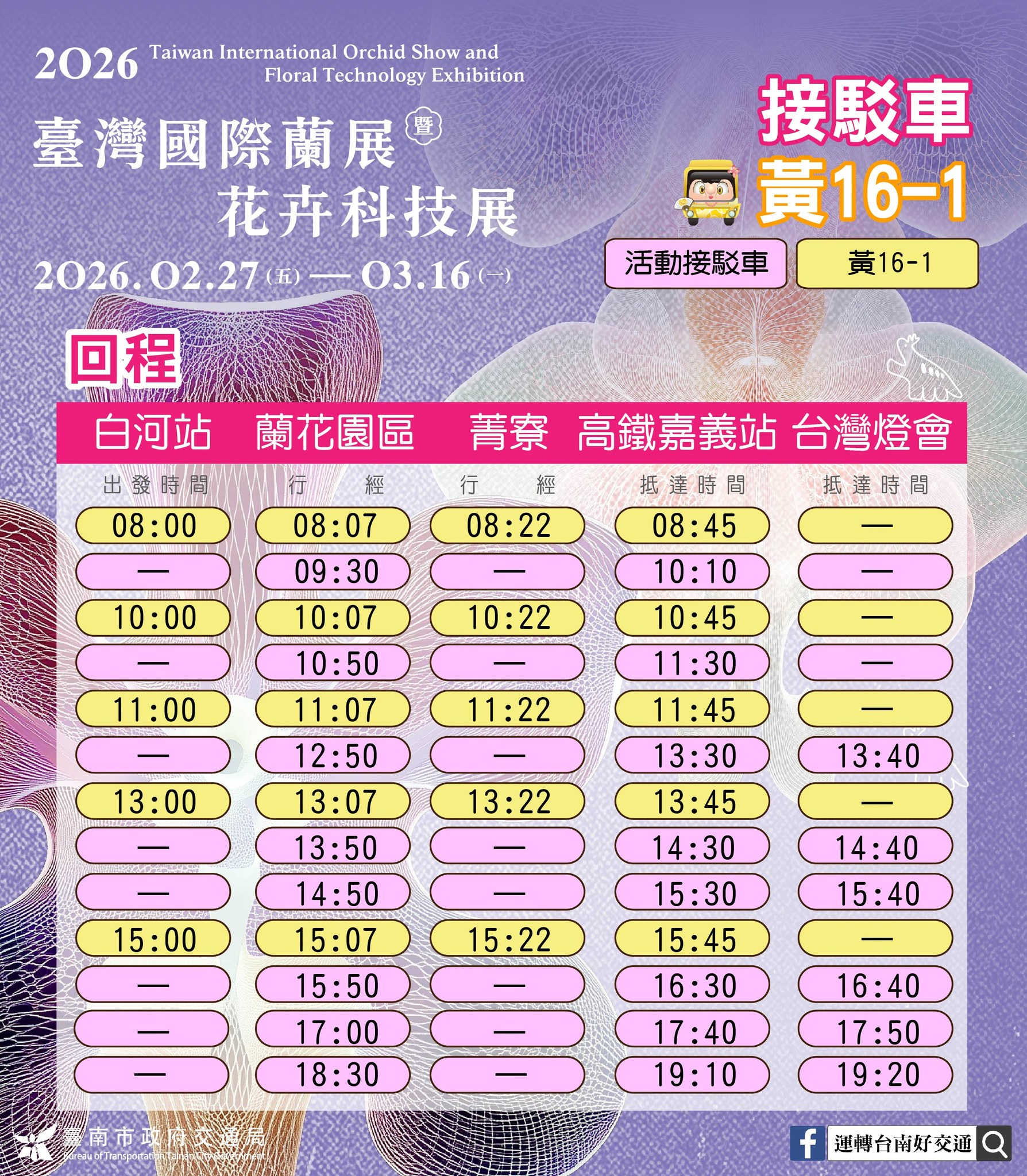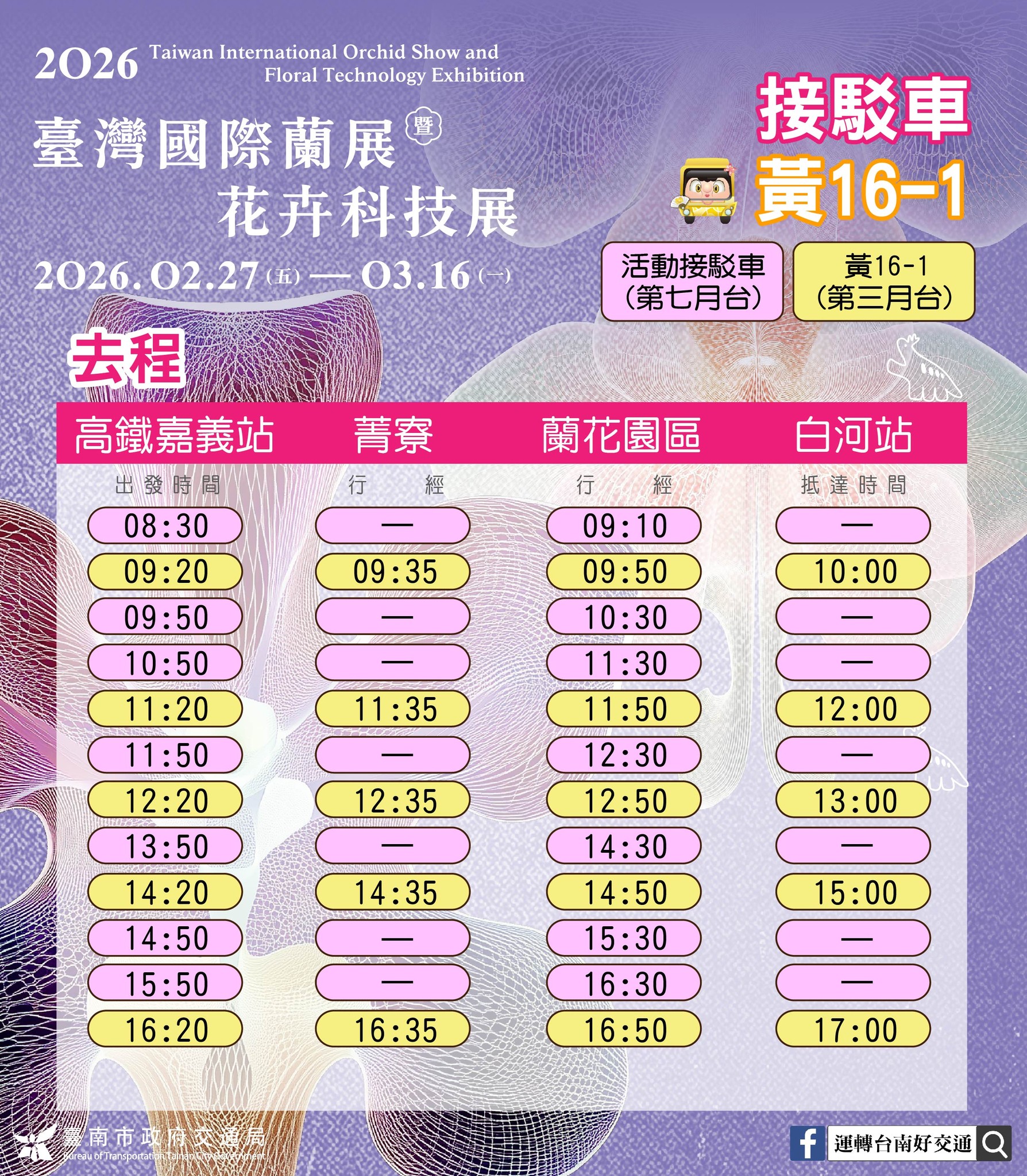3/4(三)-3/15(日)每日下午增開蘭展園區往台灣燈會在嘉義的