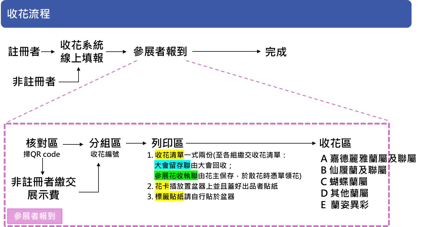 ■ 參展花報名:① 在家完成表單填寫 ② 下載 QRcode,活動現場掃描